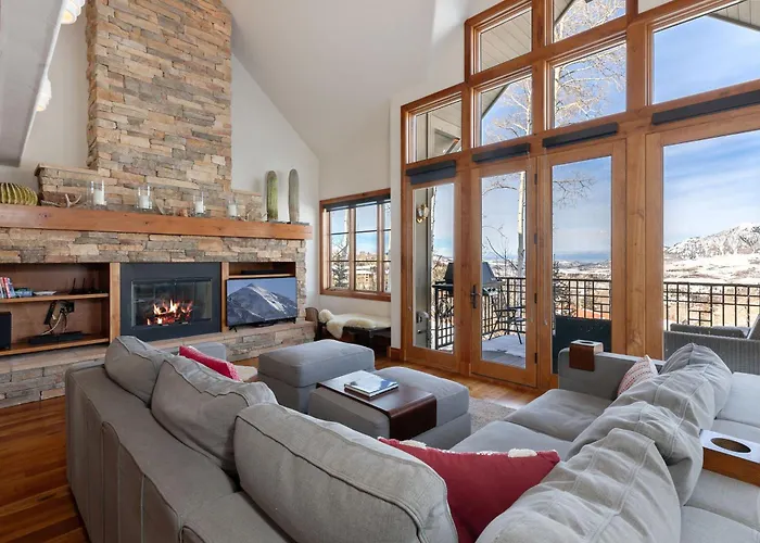 Nestled 3.4 km from the Town Park, Ascent At Aspen Ridge By Exceptional Stays Telluride villa is boasting spa therapy and ski-to-door access for guests' enjoyment. Located 10 minutes' drive from the creekside waterfall "Cornet Creek Falls", the 5-bedroom villa provides Wi-Fi and free private parking.